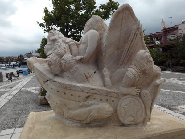 Nea Skioni, damals noch ohne Nea, erlangte schon 480 BC eine gewisse Berühmtheit durch den seinerzeit berühmten Taucher und Schwimmer Skillias. Die Perser wollten sich dessen Dienste bedienen, aber der Bursche drehte den Spieß um und kappte die Ankertrossen der persischen Schiffe und entkam 9 sm unter Wasser schwimmend, nur einen Schilfhalm als Schnorchel nutzend, zu den griechischen Stellungen und warnte die Flotte. Im heutigen Nea Skioni hat man ihm dafür ein Denkmal gesetzt: