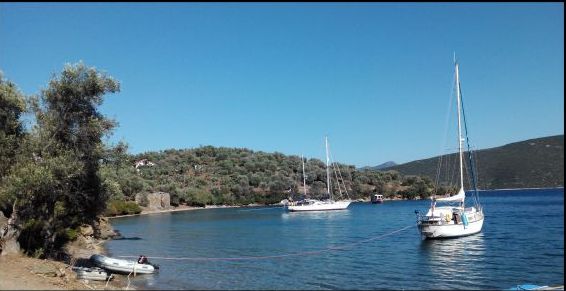 Eigentlich wollten wir von hier aus direkt nach Volos, aber unsere Nachbarn überreden uns zu einem Stop auf Trikeri im Eingang zum Golf von Volos. Das stellte sich als eine gute Idee heraus, denn die Bucht ist sehr idyllisch und unheimlich ruhig: