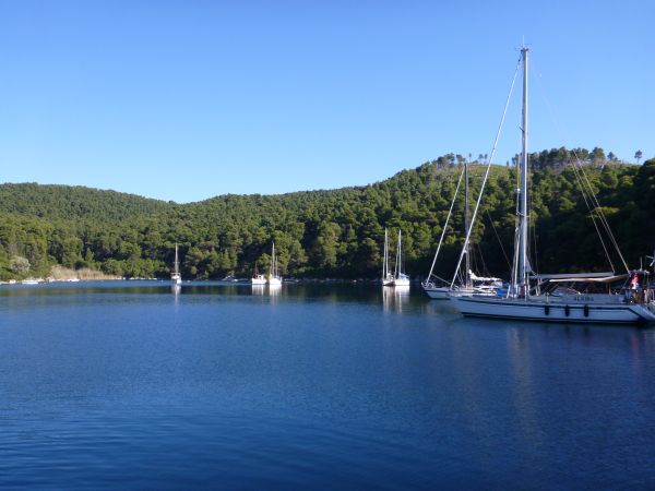 Ormos Vathouri ist nicht nur ruhig, es gibt außer ein oder zwei Tavernen an Land auch nichts. Früher war hier wohl mal eine Charterbasis von Sunsail, aber wo die die Boote liegen hatten ist mir ein Rätsel.