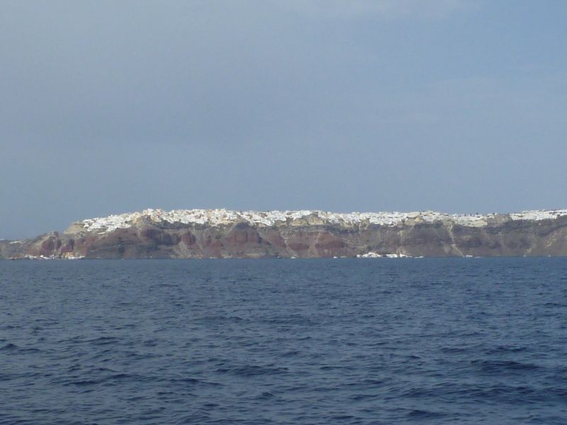 Mit Hilfe eines kooperativen Äolus geht es am nächsten Tag Richtung Thira, besser unter dem Namen Santorin bekannt, das nach einigen Theorien der Ursprung für die Atlantis-Legende sein soll. Am Nachmittag laufen wir in die Caldera des seinerzeit explodierten Vulkans ein.