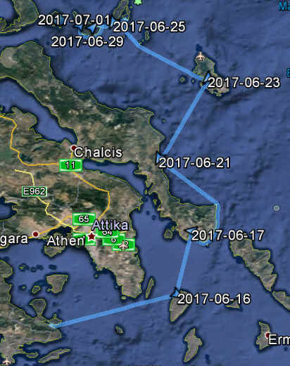 Nachdem Sioned in den Tagen seit Kreta vom Wind eher verwöhnt wurde legt dieser nun eine Pause ein oder übertreibt es und - es sei vorweg genommen - wir können keine einzige Meile bis Skopelos segeln.