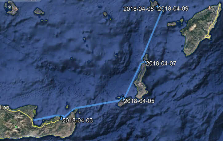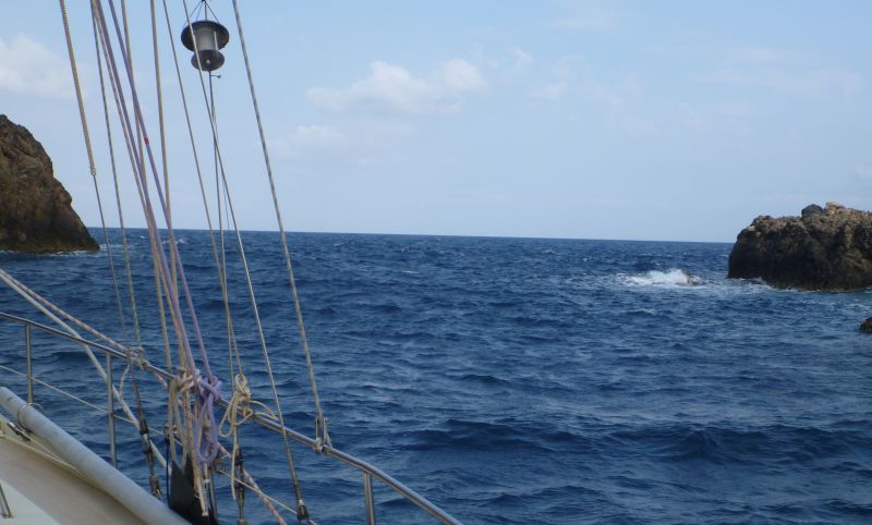 So verlassen wir Sitia nach einem Tag Pause wieder und passieren bei Flaute den nordöstlichsten Punkt von Kreta.