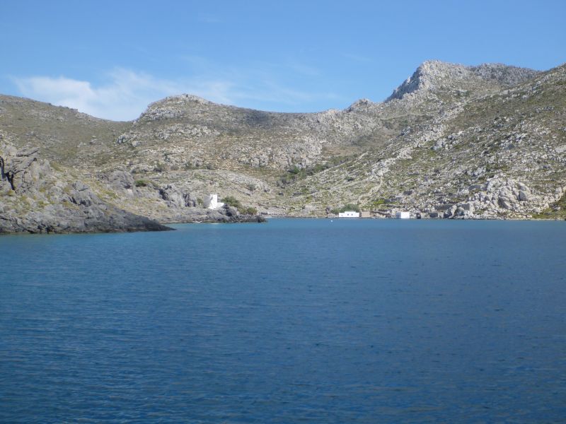 Der nächste Tag führt und bei einem schönen Halbwindkurs Richtung Tilos. Die erste Nacht verbringen wir vor Anker um am nächsten Morgen in Ruhe längsseits an der Innenseite des Wellenbrechers festzumachen. Abends legt eine große Blue Star Fähre an und wir sind froh, nicht auf der Außenseite zu liegen. Das wäre echt "Scary". Anlegen, Ent- und Beladen und Ablegen geht so schnell, da könnte sich mancher Busfahrer eine Scheibe abschneiden.