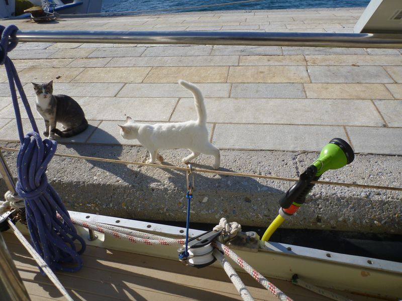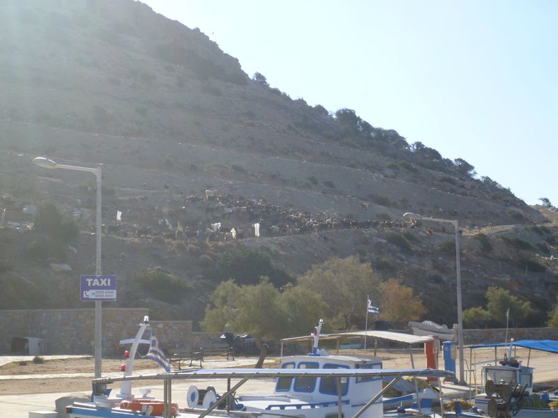 Wir bleiben nur eine Nacht und fahren dann zu Ziegenpeter, der eigentlich Vasilis heißt nach Kalando an der Südwestecke von Naxos. Wie erwartet haben wir den Hafen fast für uns allein. Nur eine weitere Yacht läuft kurz nach uns ein. Dafür müssen wir uns unter Einsatz von Wasserwerfern der Enterversuche der Einheimischen erwehren.