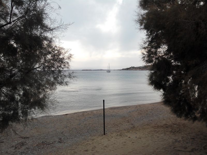 Wir fahren einen Katzensprung weiter nach Schinoussa und haben die Bucht dort für uns allein. Was gut ist, denn mehr als 1-2 Schiffe passen da auch nicht rein. Der Ankergrund ist suboptimal und die hellen Sandflecken, auf denen wir unser Glück versuchen entpuppen sich später als massive Felsplatten. Im dritten Anlauf haben wir dann doch noch Glück und können ihr wunderbar ruhig liegend die Zeit bis zur Weiterfahrt abwarten.