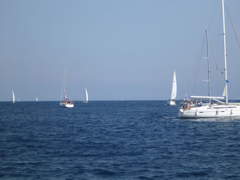 Während die Forums Kollegen beschließen, dass es hier schön genug ist, fahren wir am nächsten Tag weiter nach Loutra, auf die andere Seite der Insel, wo sich der Hafen an diesem und am Folgetag mit gleich zwei Regattaflotten füllt.