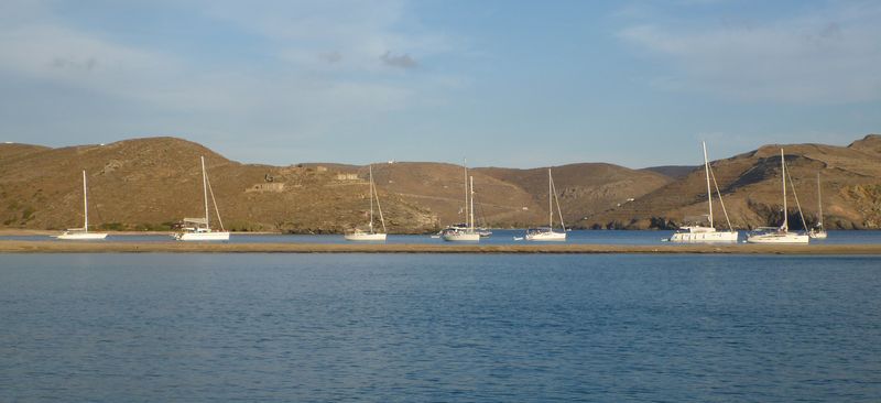 Zur Erholung vom Medicane bleiben wir noch einen Tag in Ermioni und nehmen dann direkt Kurs auf Kythnos in die "Ich-bin-zwei-Buchten-Bucht" Ormos Kolona. 55 sm und gerade nicht genug Wind um die Strecke bei Tageslicht segelnderweise zu schaffen.