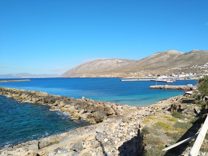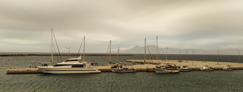 Vier Tage wollen wir auf Kasos bleiben, denn ab Samstag ist SE angeagt und der nicht zu knapp. Auf der Nordseite der Betonpier wähnen wir uns daher ruhig und sicher. 36 Stunden Schwell und zwei durchgescheuerte Leinen später wissen wir es besser. Heftige Fallböen drücken das Wasser ins Hafenbecken und sorgen für eine sehr unruhige Nacht. New Dawn am äußersten Ende der Pier hat es am schlimmsten. Wir liegen im Mittelfeld.