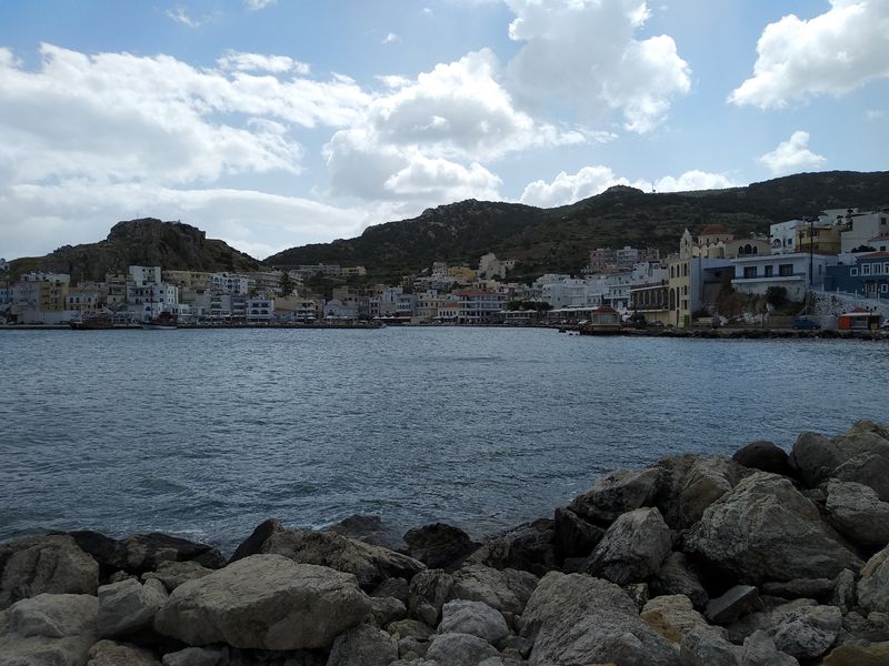 Verglichen mit Kasos ist Karpathos ein Kulturschock mit vielen Touri Läden und einer Hafenpromenade voller Tavernas und Cafes, nur abgemildert durch die frühe Zeit im Jahr.
