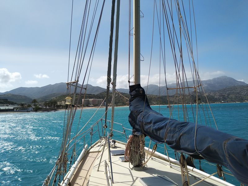 So können wir am 1. Mai doch die Leinen loswerfen und 20 sm östlich nach Sitia verlegen. In Anbetracht der drei anderen Boote, die dort bereits liegen, zwei davon aus Agios Nikolaos, beschließen wir, bereits früh am nächsten Morgen weiter zu fahren nach Kasos, denn der Platz dort ist begrenzt.