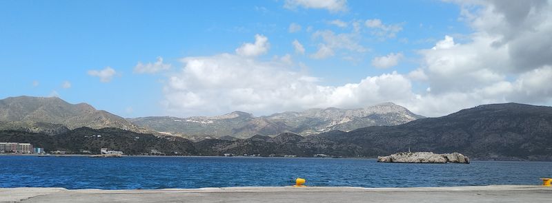 Unseren Plan für Gulasch zum Abendessen müssen wir allerdings aufgeben. Das wurd mir vom Metzger für nach Ankunft der Fähre avisiert. Letztere schaut sich die Situation an, dreht wieder ab und dampft weiter nach Sitia. Böen 8-9 waren dem Skipper wohl zu viel. Die wartenden Passagier tragen es mit Fassung und fahren wieder nach Hause. Frei nach dem Graham Gouldman Song singen wir "No meat today - the ferry's gone away..."