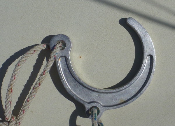 Mit der einen Leine hält man die fremde Kette, mit der anderen Leine löst man sie. Solch ein Teil sollte auf keinem Schiff in Griechenland fehlen.